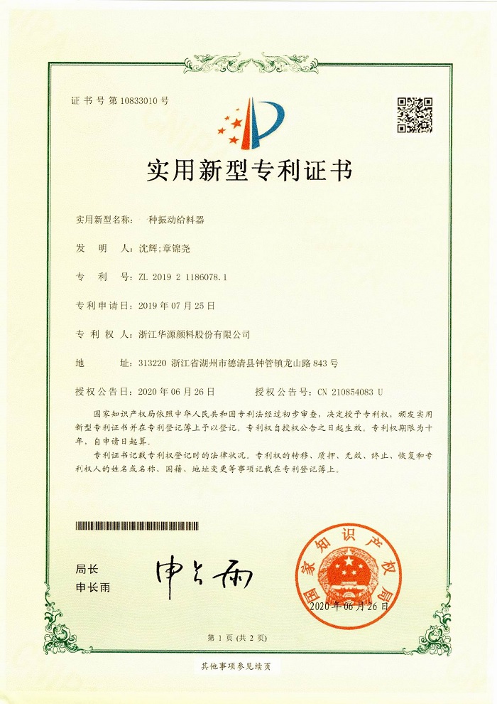 迄今為止,華源顏料已獲得授權專利51項,其中發明專利26項、實用新型專利25項,這些專利成果為華源顏料的持續經營發展提供了強有力的支持。華源顏料將繼續在新產品、新技術、新工藝的研發上加大投入,不斷提升企業核心競爭力,為客戶帶來更優質的產品和更完善的服務。