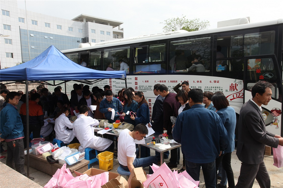4月28日上午,集團黨委、工會、婦聯、團委聯合組織員工參加了一次無償獻血迎“五一”活動。湖州市中心血站派出的無償獻血流動采血車??吭阽姽苕傂姓行膹V場上。早上8點不到,集團總部及所屬各子公司近百名黨員、干部和職工便陸續趕來參加此次無償獻血活動。體檢臺、采血車入口處排起了長龍,大家爭先恐后地參加無償獻血。集團黨委副書記、工會主席鮑希楠帶隊參加了當天的無償獻血活動。